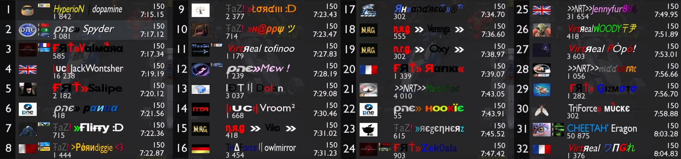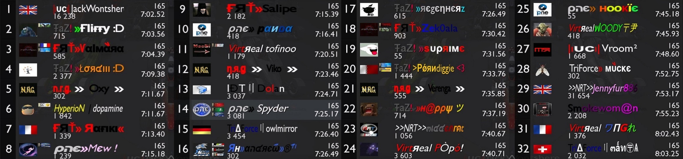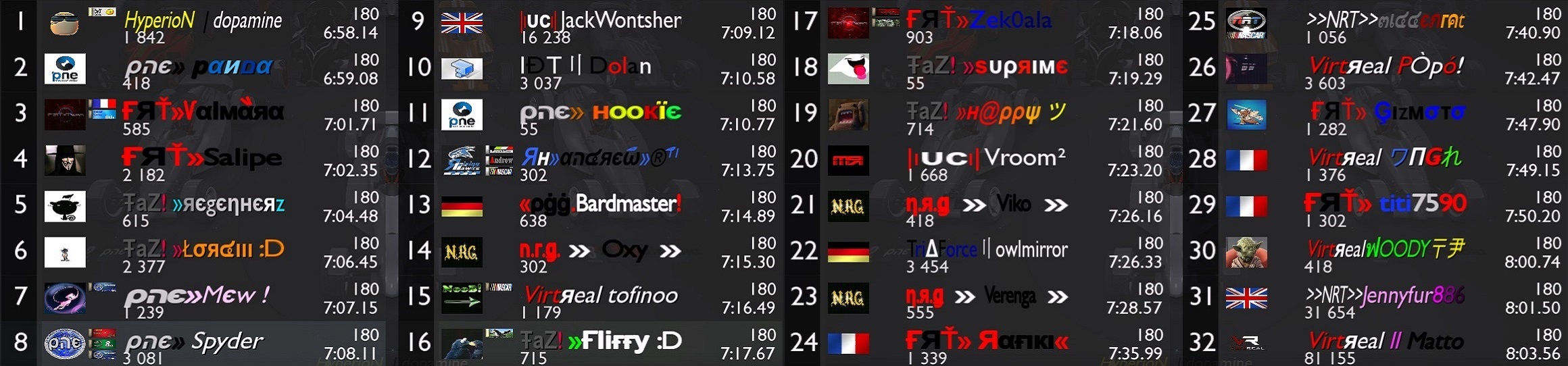 Thanks to the mappers for their good maps, it allowed us to play on different nascar styles.